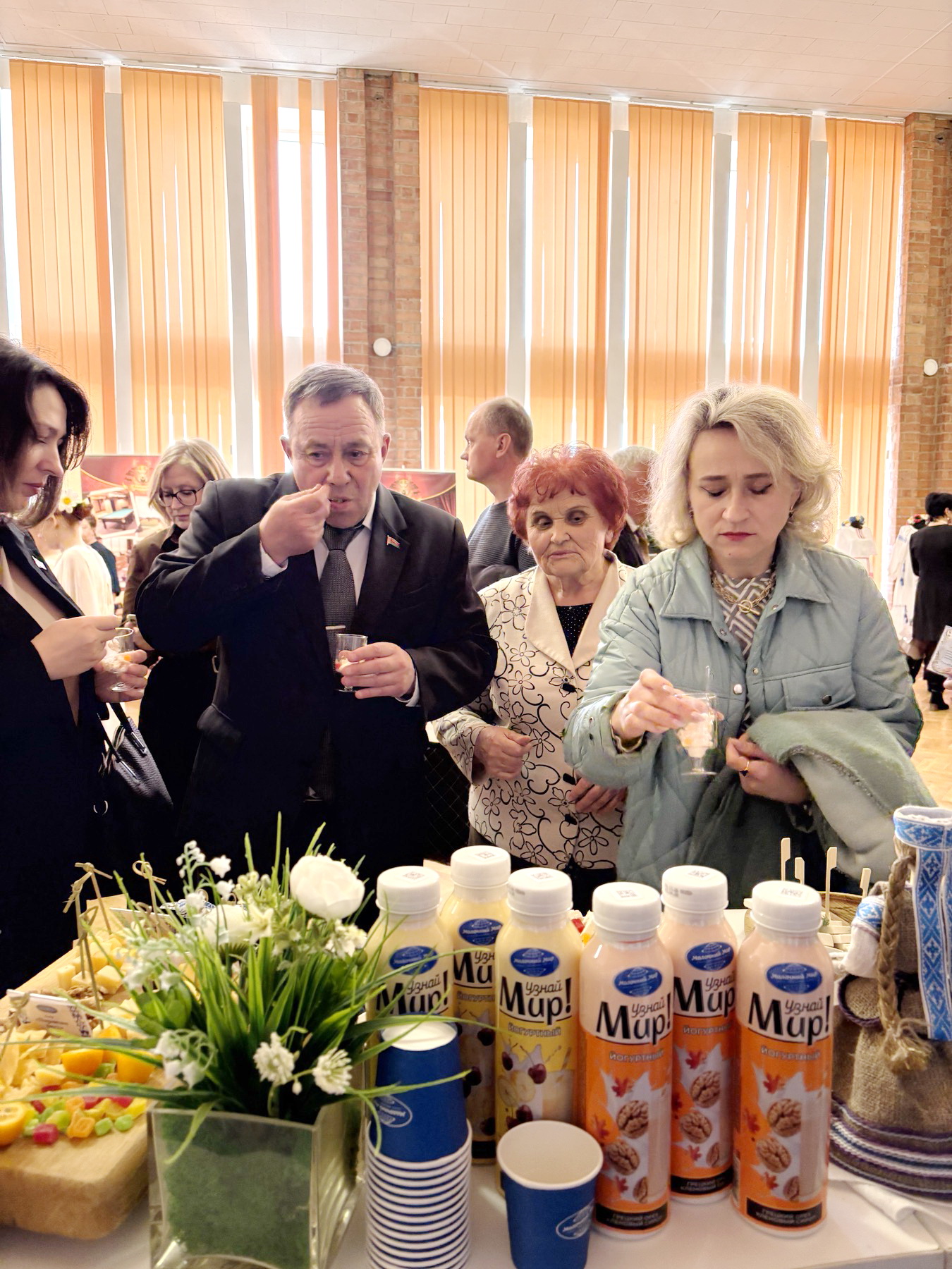 В рамках проведенного слета передовиков производства и лучших по профессии была организована выставка-презентация предприятий и организаций района. Гости с удовольствием знакомились с экспонатами выставки, обменивались впечатлениями. Сотрудники Щучинского филиала для гостей мероприятия организовали дегустацию продукции ОАО «Молочный Мир»