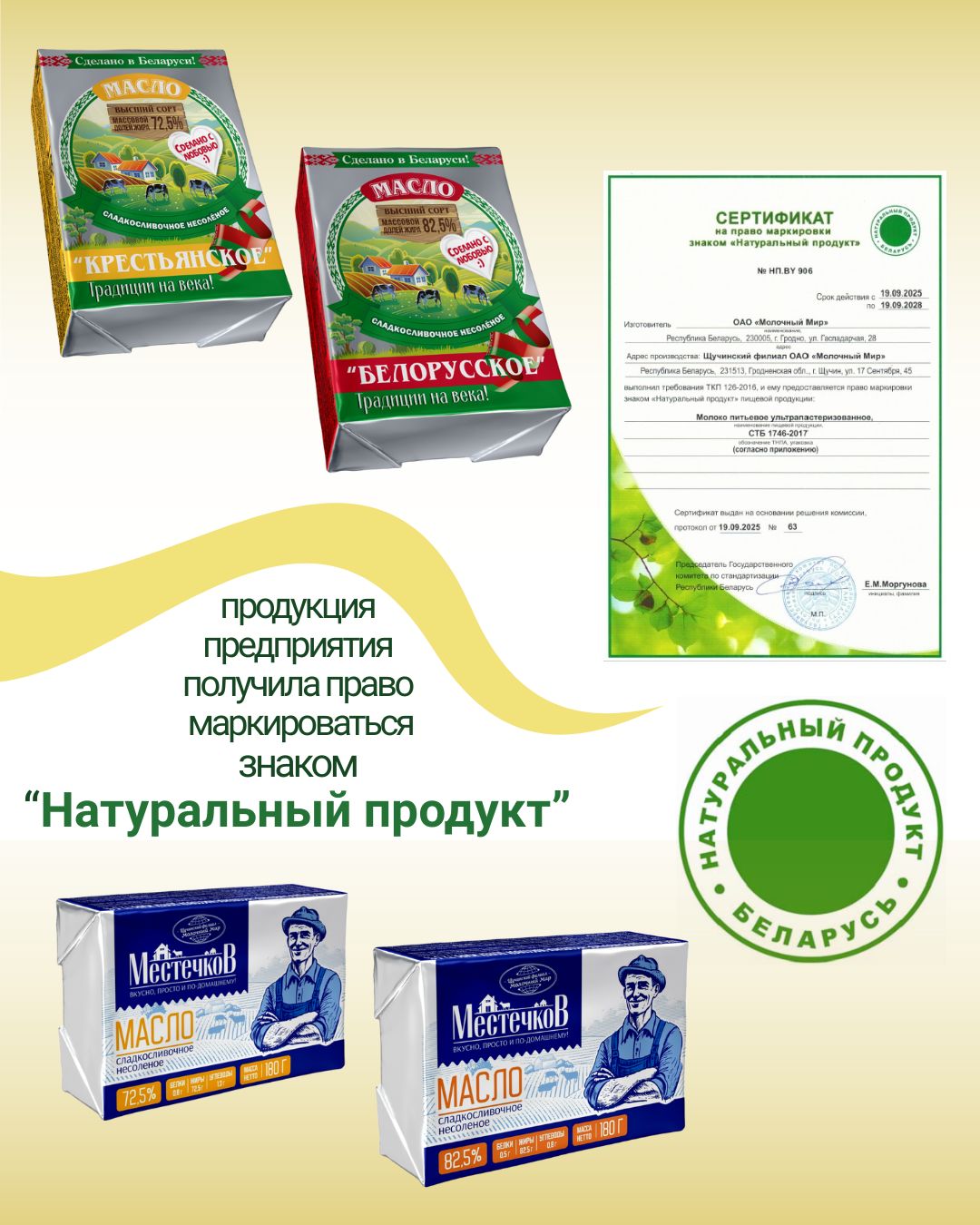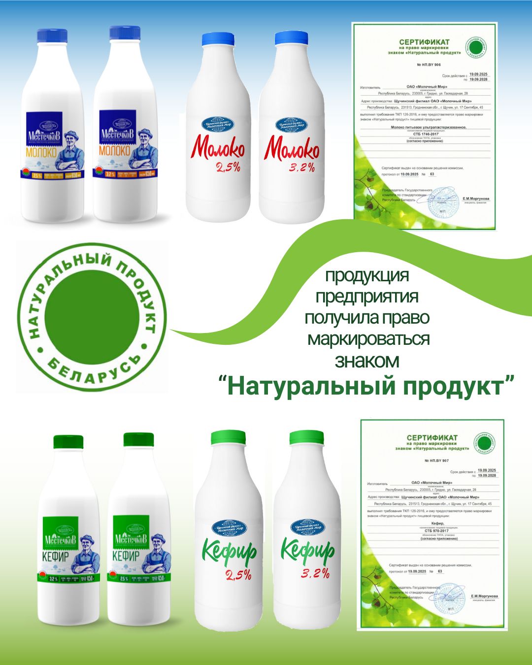 Молоко, кефир, масло нашего предприятия получили право маркироваться знаком «Натуральный продукт», это значит, что продукция производится исключительно из натурального сырья, без применения методов генной инженерии и искусственных пищевых добавок, пестицидов, стимуляторов роста.