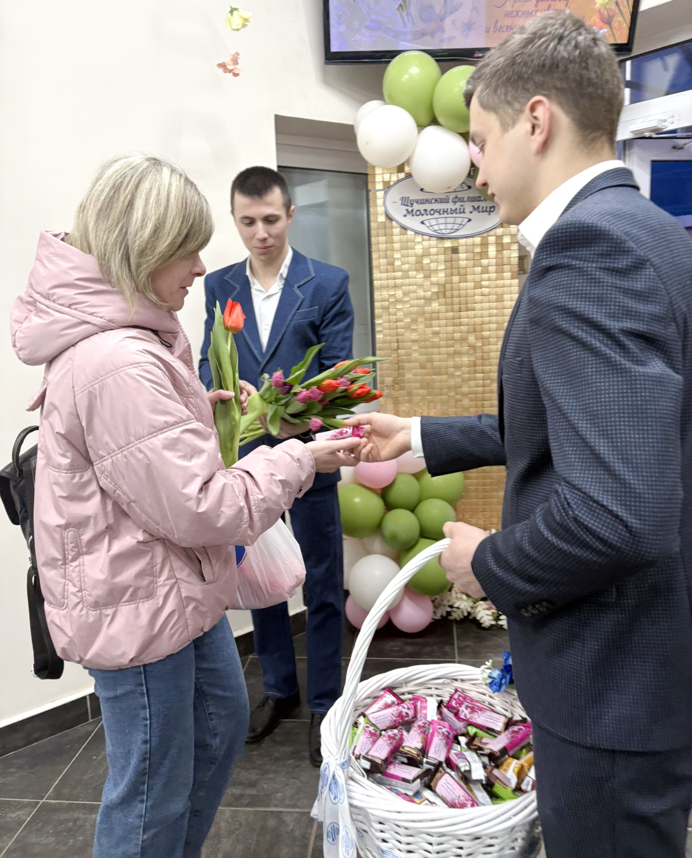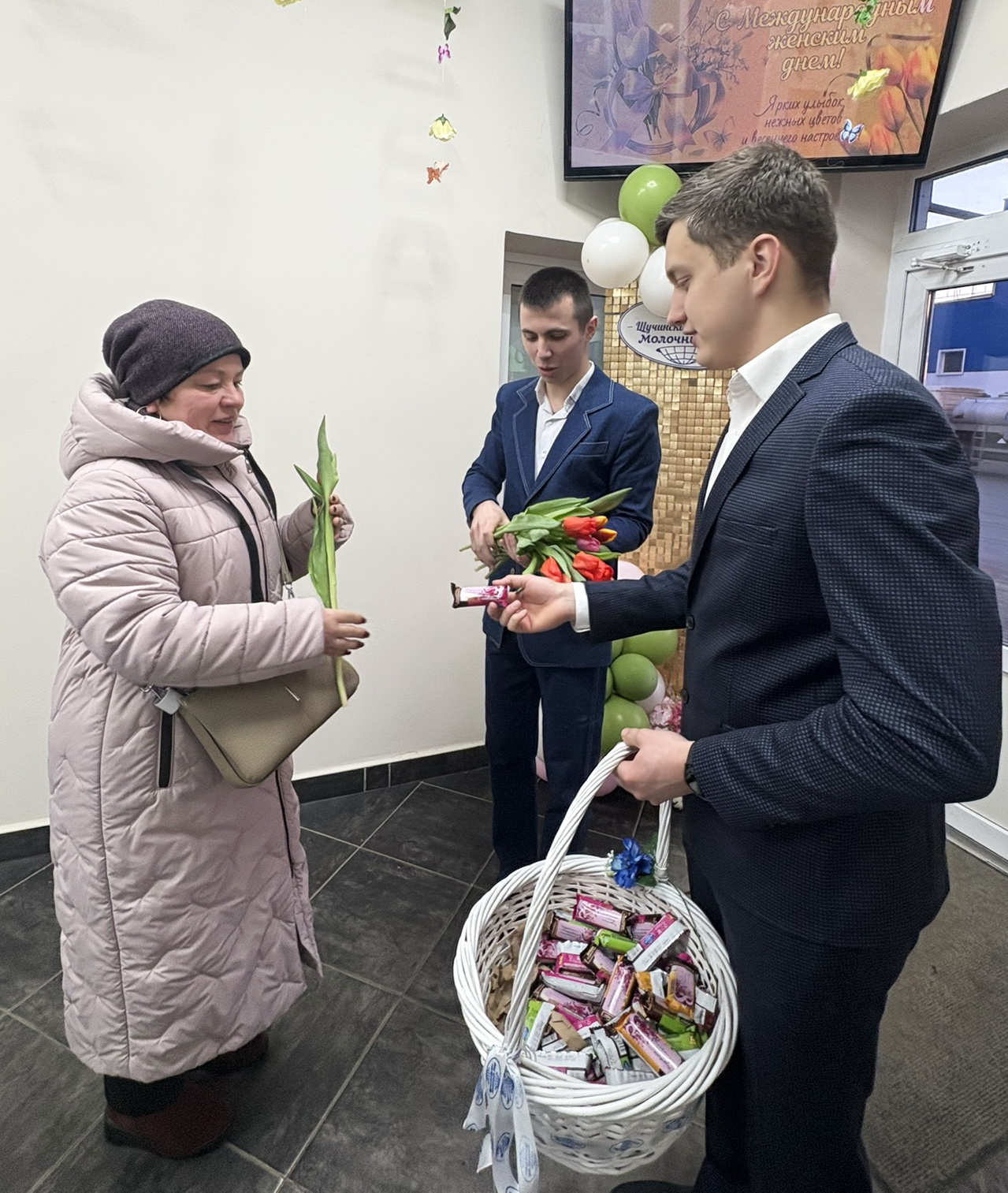 Каждая женщина в предпраздничный день получила не только искренние поздравления, но яркие тюльпаны и сладкие сырки — символ заботы и внимания! Эти маленькие радости сделали день ярче и теплее.